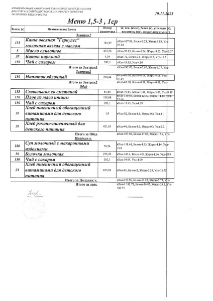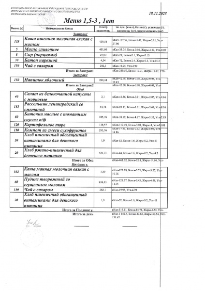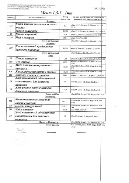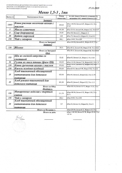 10 дневное меню Детский сад 1,5-3 лет от 30.09.2024