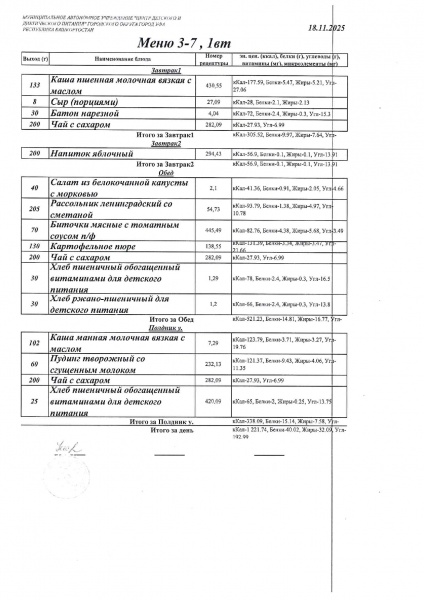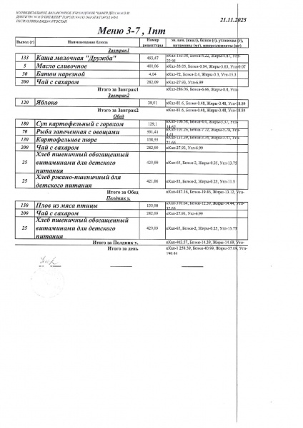 10 дневное меню Детский сад 3-7 лет от 30.09.2024