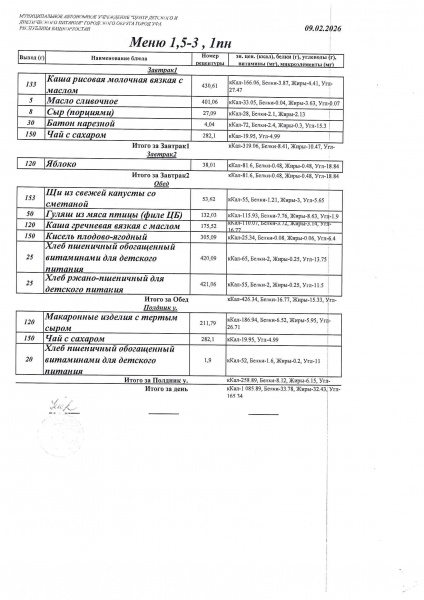 10 дневное меню Детский сад 1,5-3 лет от 30.09.2024