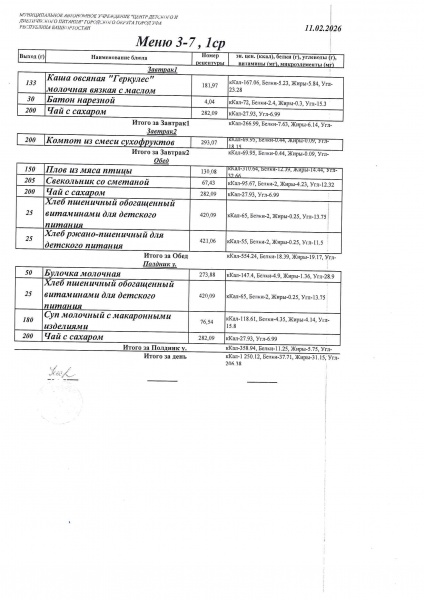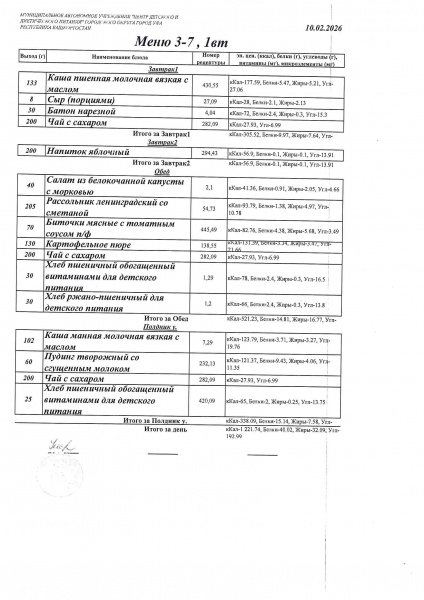 10 дневное меню Детский сад 3-7 лет от 30.09.2024