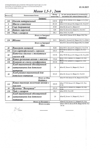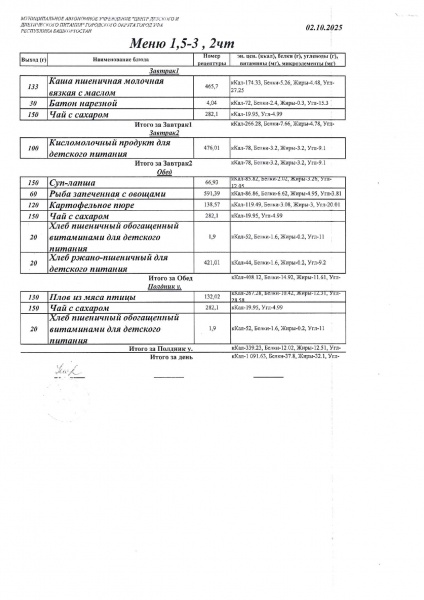 10 дневное меню Детский сад 1,5-3 лет от 30.09.2024