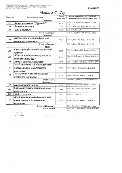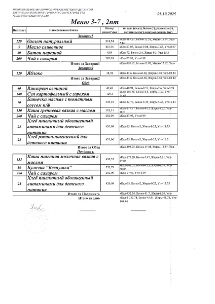 10 дневное меню Детский сад 3-7 лет от 30.09.2024